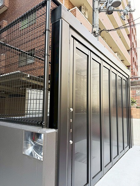 南、北、あわせて2カ所、鉄骨階段に下地を入れ、立ち上がった下地にパネルをノンシール工法で施工しました。 逃げのきかないノンシール工法で加工・施工できたのは、弊社の技術の向上になり、自信になりました。